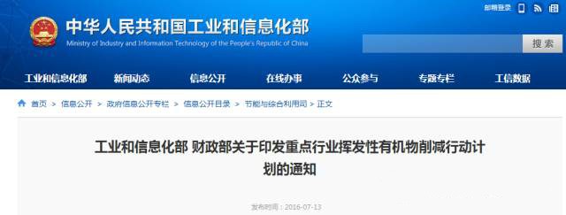 工信部 财政部关于印发重点行业挥发性有机物削减行动计划的通知