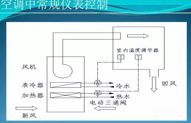 第4.3.3条 室温允许波动范围大于或等于±1.0℃和相对温度允许波动范围大于或等于±5%的空气调节系统,当水冷式表面冷却器采用变化量控制时,宜由室内温湿度调节器通过高值或低值选择器进行优先控制,并对加热器或加湿器进行分程控制,冷水系统宜采用两通阀及改变水泵转速或台数控制。