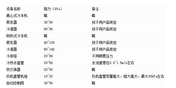 1.冷水机组阻力:由机组制造厂提供,一般为60~100kPa.