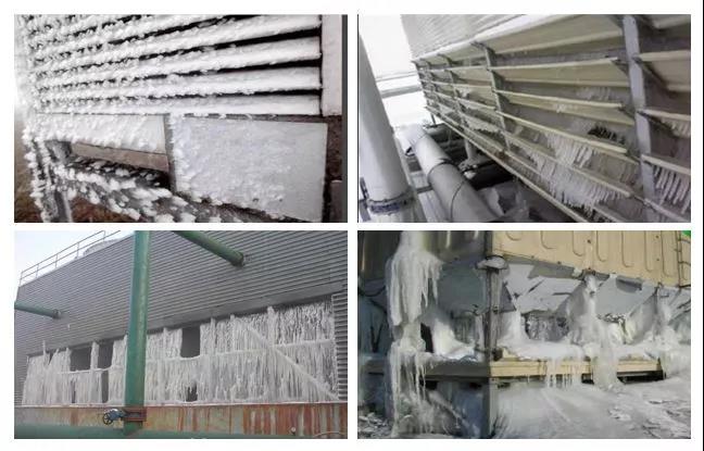 常年运行或部分时间段运行的场合防冻有两部分:喷淋水系统和内部循环水系统(软化水)。喷淋水系统的防冻问题通常在积水盘内增加电加热器,一般在喷淋水低于5℃时开启,8℃以上停掉。温度探头将信号传递至控制柜,自动控制电加热器的启停。电加热器的功率选择依据循环水量和外界气温确定。