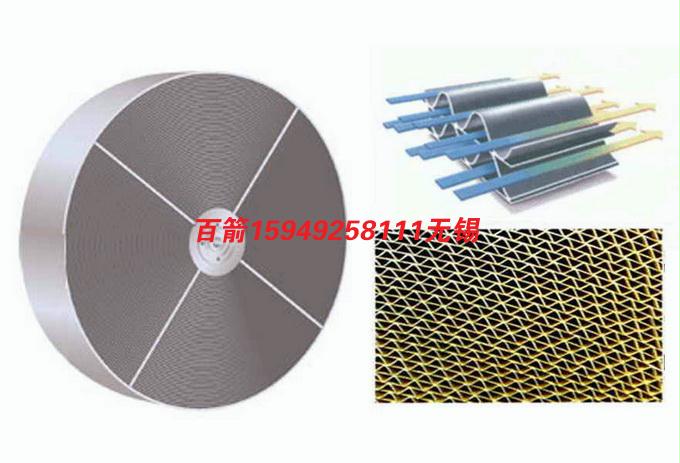热交换器由蜂窝状转轮、传动装置和框架组成。蜂窝状转轮的基材为铝质(蓄热体),在其表面涂有吸湿材料,转轮的热交换效率主要取决与以上两部分。